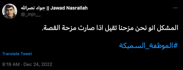 وفي تغريدة لنجل أمين عام “حزب الله” جواد حسن نصر الله. في تعليق على المشهد الذي اعتبره البعض “مزحة”. كتب: “المشكل إنو نحن مزحنا تقيل، إذا صارت مزحة القصة”، وختم بهاشتاغ: “الموظفة السميكة”.
