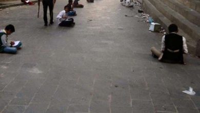 صورة: طلاب يمنيون يؤدون اختباراتهم في شوارع مدينة تعز